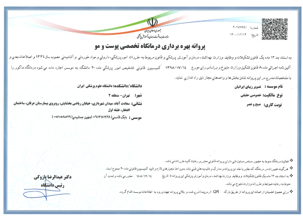 گروه کلینیکهای زیبایی ایرانیان با بیش از ۲۶ سال تجربه درخشان و دارا بودن چهار شعبه تخصصی در تهران، مجهزترین کلینیک خاورمیانه در زمینه زیبایی، جوانسازی، لاغری و لیزر است.